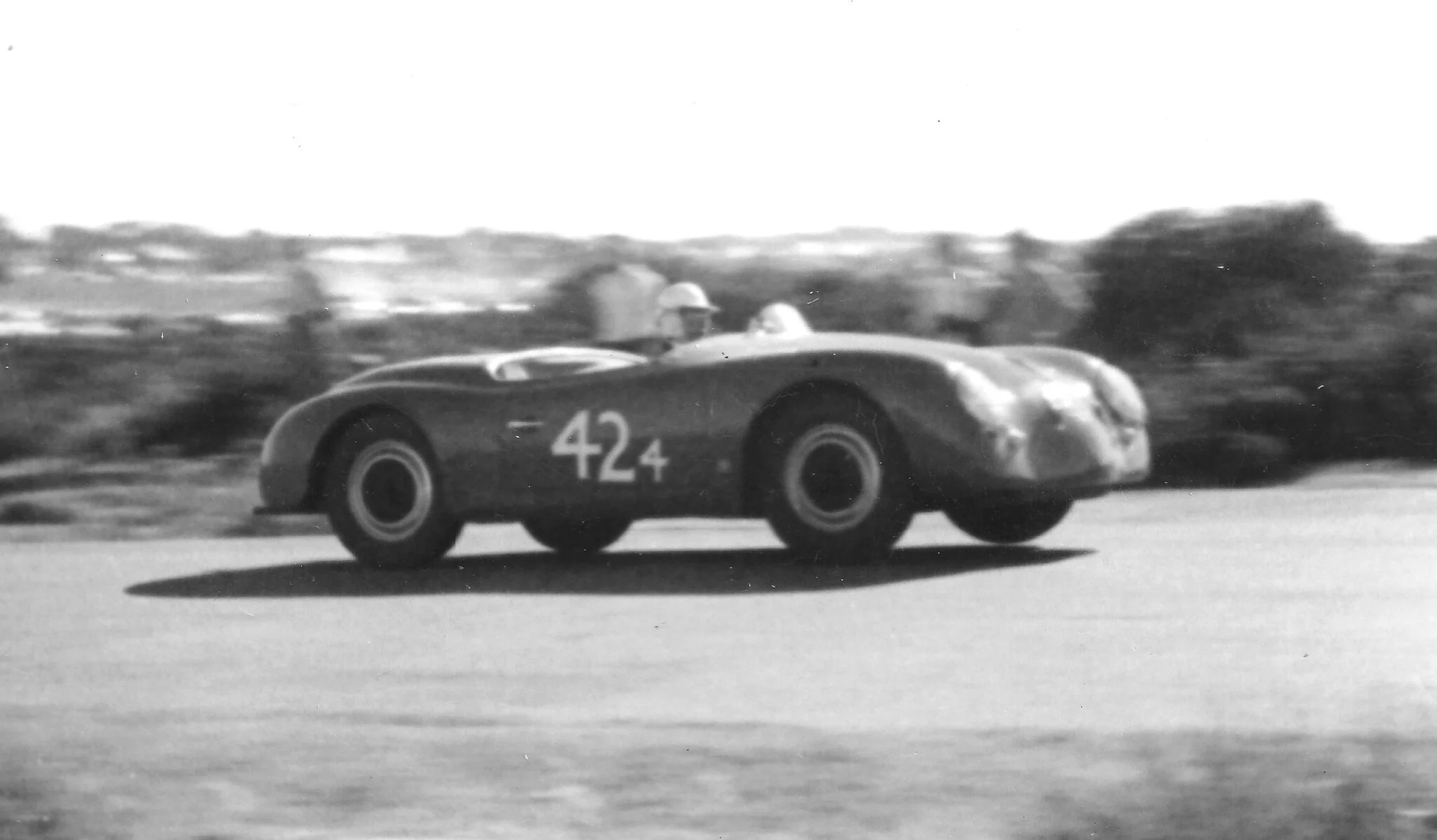 This America Roadster, Chassis No. 12336, the ninth of the 17 cars built, was ordered by Hoffman for California dealer John von Neumann. In August of 1952, it was delivered to its first owner, John Crean. Crean, an avid racer in Southern California, also loaned the car to John von Neumann’s stepdaughter, Josie. Josie von Neumann and John Crean would go on to have a successful race season with this car in 1952 and 1953. Crean was known to push the car to its limit and blew the engine multiple times, eventually swearing off racing, and selling the car.