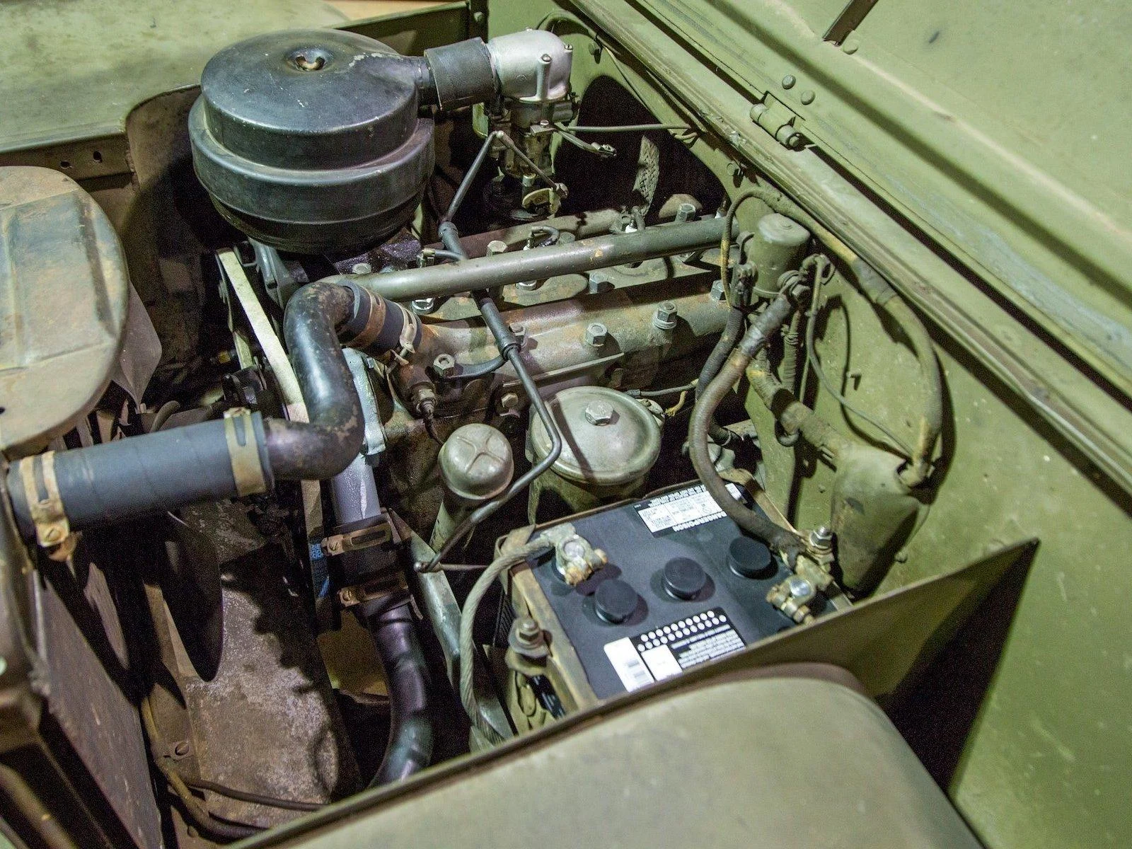 GP-No. 1 features a front-mounted, gasoline powered, 119.7 cubic inch displacement (cid) flathead, inline four-cylinder engine. The engine is naturally aspirated and equipped with a Holley 847-type single-barrel, downdraft carburetor. GP-No. 1 was originally fitted with an updraft carburetor. It was changed in period to the Holley 847-type downdraft carburetor based on initial tests by the U.S. Army. The engine is similar to those utilized in Ford 9N tractors of the period and also the 1941 truck line and was rated at approximately 30 horsepower in period.