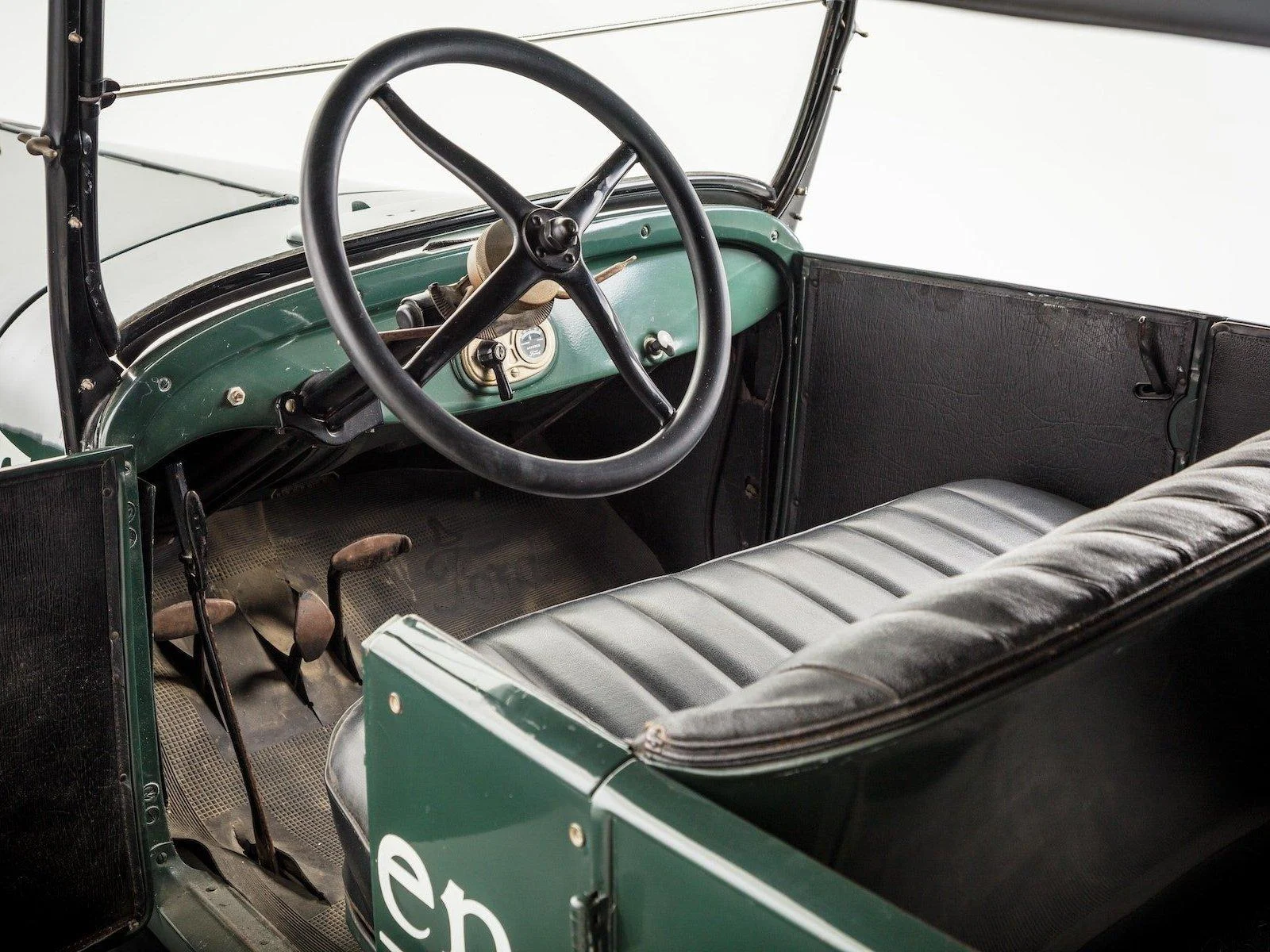 This vehicle is in mostly unrestored condition. It has had minor repairs and has been repainted green with lettering to simulate the original.