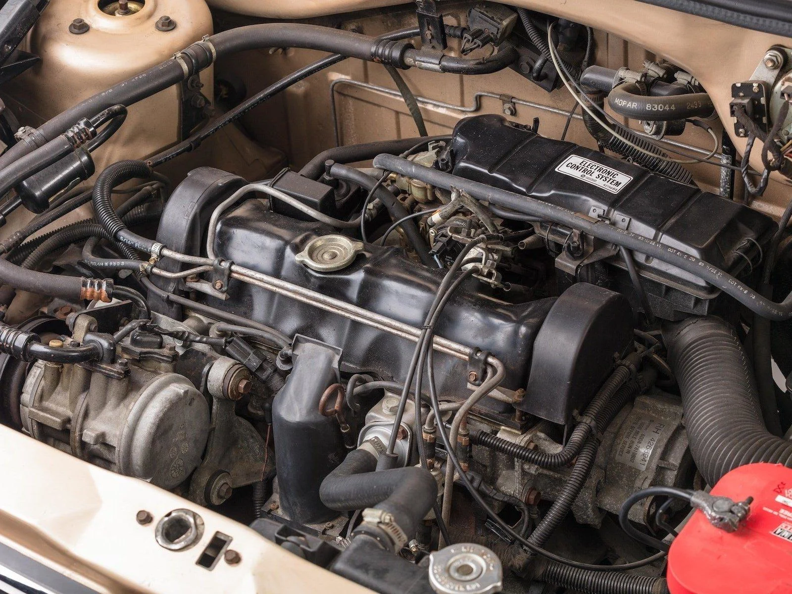 Chrysler-built liquid-cooled, SOHC inline-4 cyl 135cid/96hp with 2-barrel Holley carburetor. Original and unrestored.