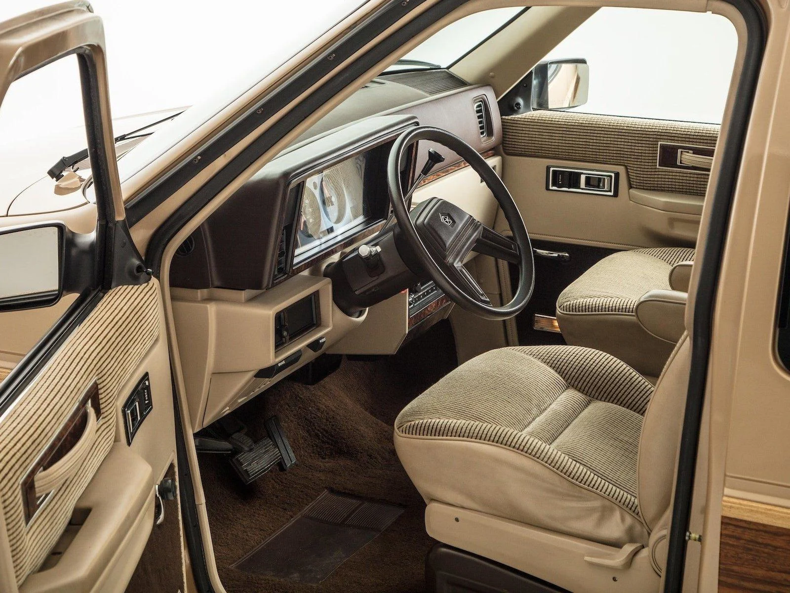 This vehicle’s interior is in original unrestored condition. It features beige cloth seats.